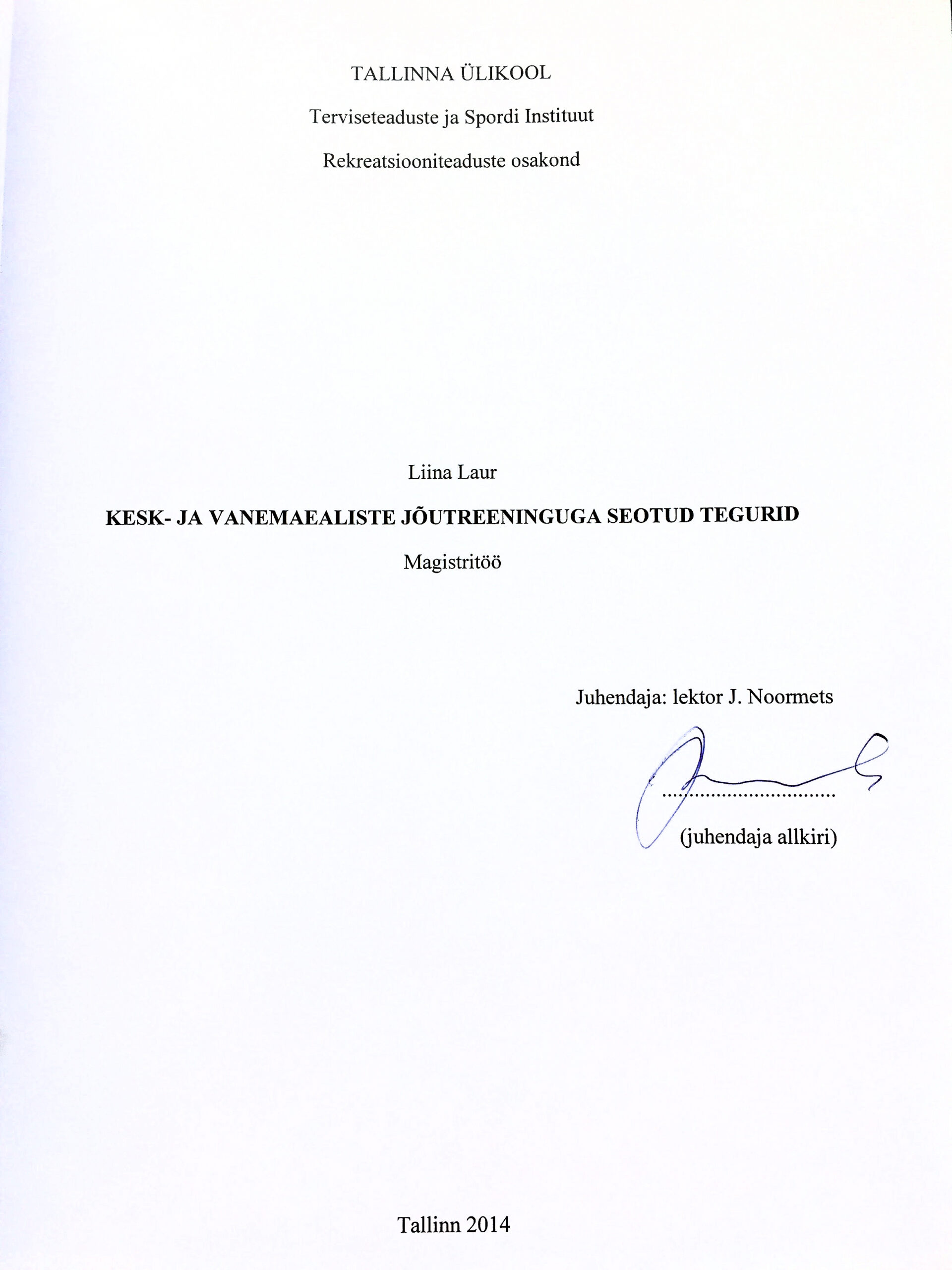 Body Monarch > Kvalifikatsioon > Certificates > Kesk- ja vanemaealiste jõutreeninguga seotud tegurid – magistritöö